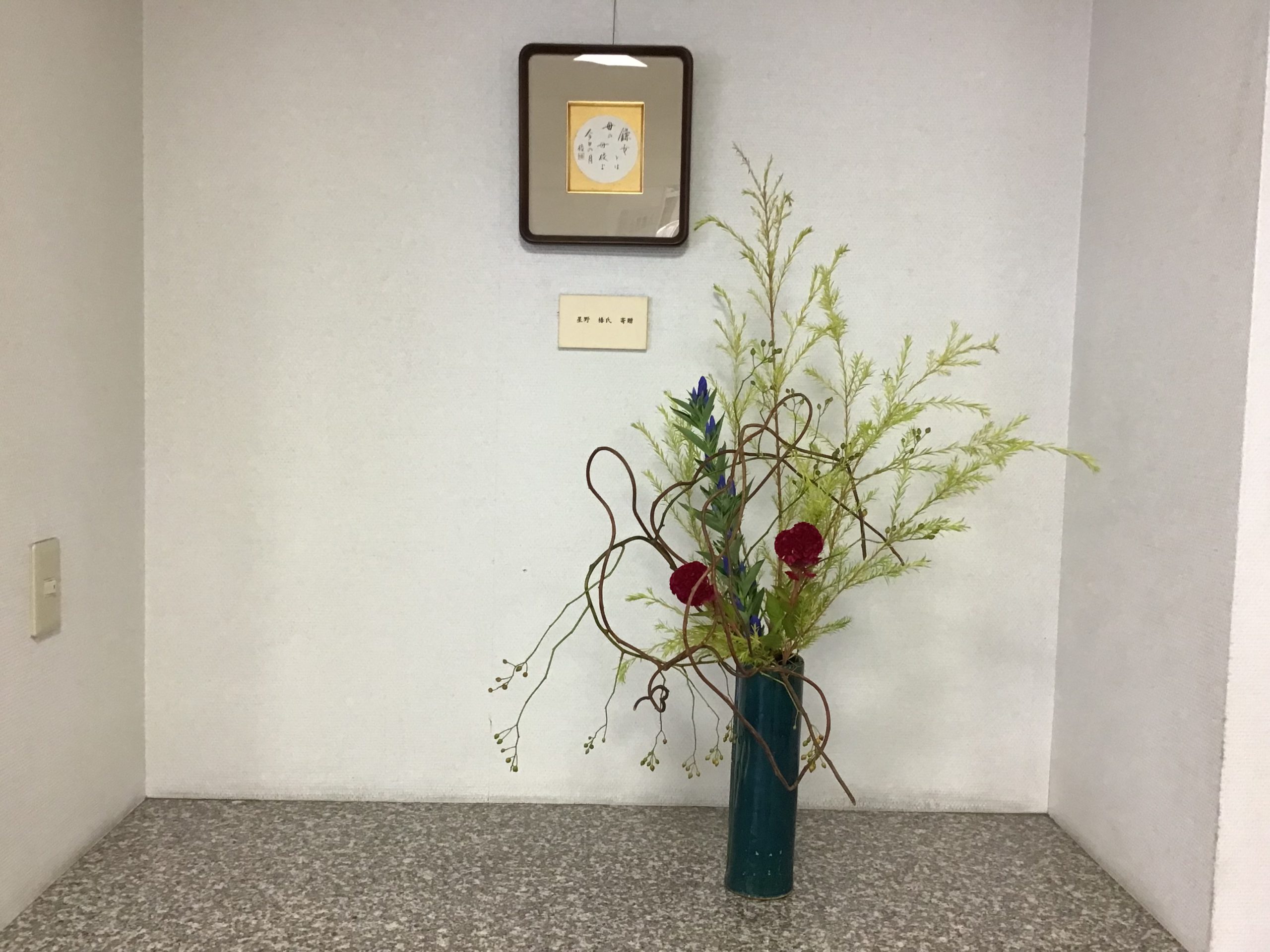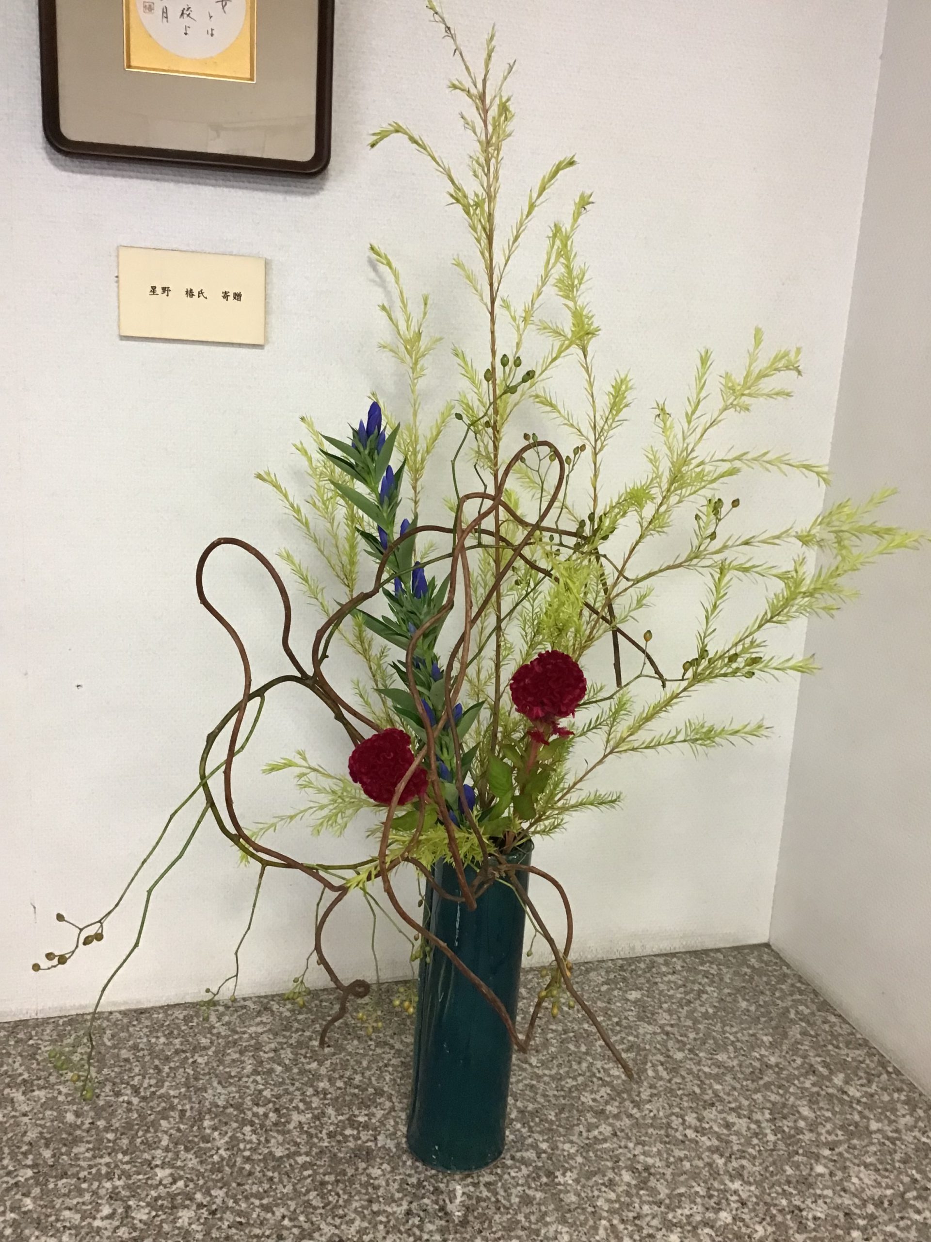 今日もホールに華道履修高3生徒がお花をいけてくれました。