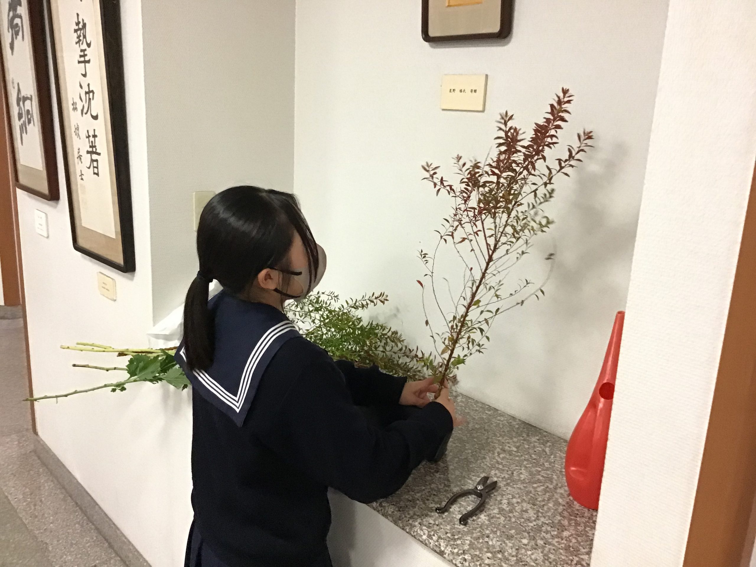 今週のお花 2025.10.15 今日も特修華道履修高3生徒がホールにお花をいけてくれました。 ホールが秋らしい雰囲気に包まれました。 花材:雪柳、スプレーマム、フサゲイトウ、ワレモコウ 高3は12月までのお稽古で、6年間のカリキュラムが終了となります。師範証書取得を目指し、お稽古に熱が入っています。 #今週のお花 #特修 前へ 一覧に戻る 次へ