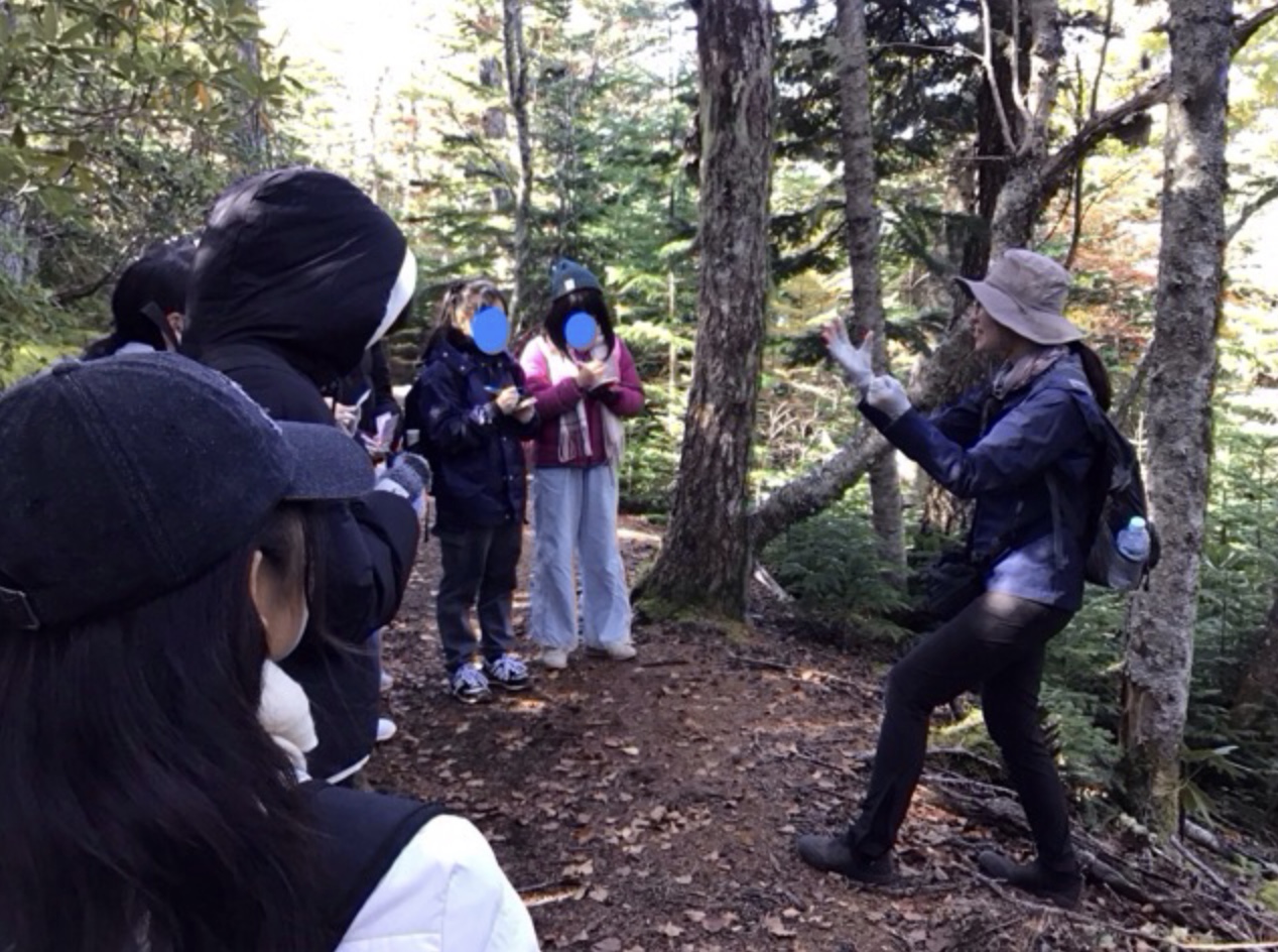 生徒たちは、熱心に質問をしながらメモを取り、実際に見て、触れて、匂いを感じることで、自然を五感で体験していました。