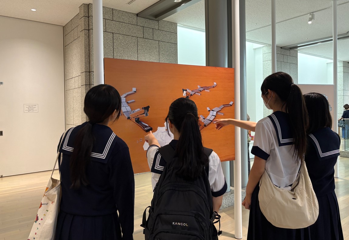 午前中は、横浜美術館で開催中の「佐藤雅彦展 新しい×(作り方+分かり方)」を鑑賞しました。ピタゴラスイッチの番組内で実際に使われた作品が展示されていたり、中学生で学習する数学の内容を身近なものを使って解説されていたり、見ごたえのある展示ばかりで部員たちも楽しみながら回ることができたみたいです。