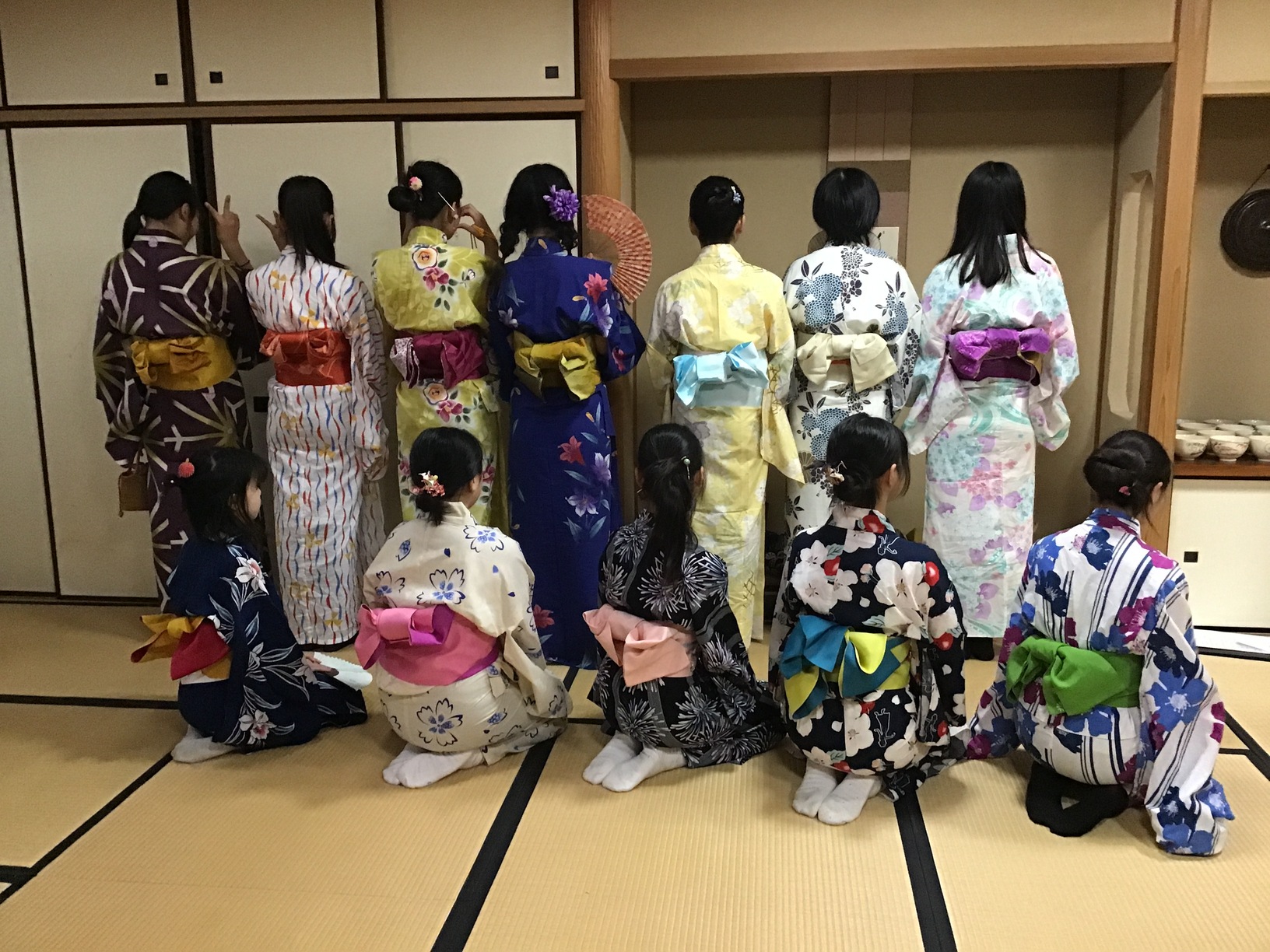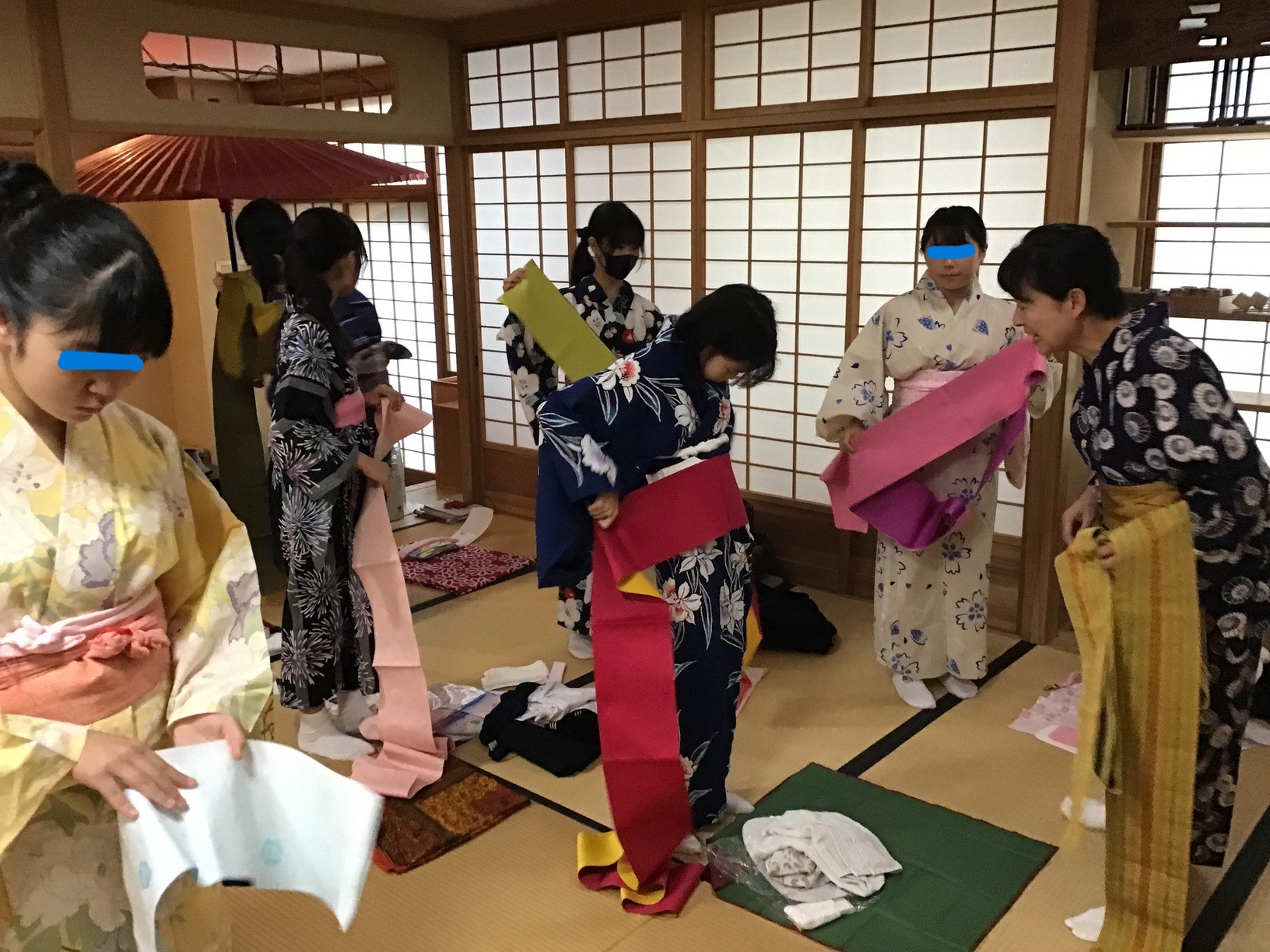 また、「日本の衣文化」では、外部講師の先生をお招きして、ゆかたの基礎知識・着付け・きこなしまでを学びました。素敵なゆかたと自分が選んだ髪飾りを身につけ、満足げな生徒たちでした。