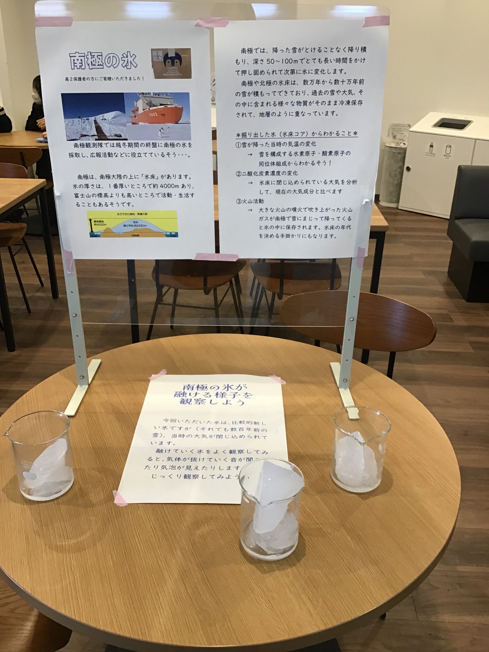 12月8日から、7月にご寄贈いただいた南極の氷を校内に展示しています。
