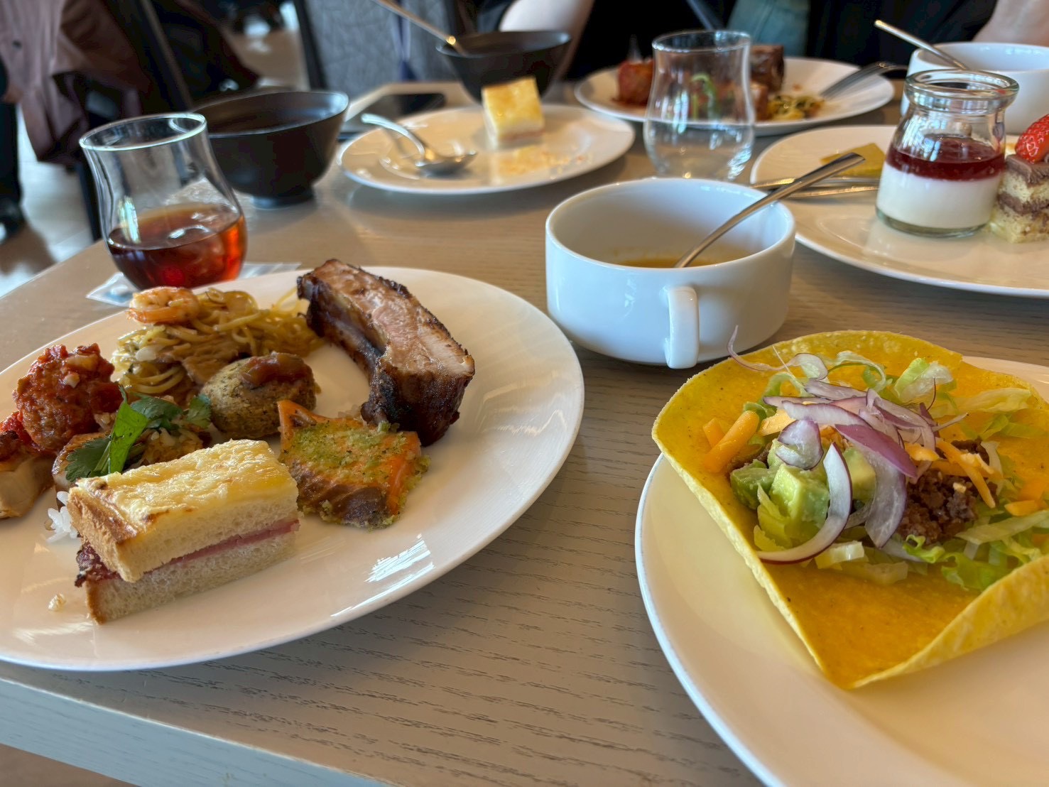 豊かな自然に癒やされつつ、色鮮やかなビュッフェに舌鼓を打ちな がら、保護者の方々と和やかに談笑する贅沢なひとときを過ごせま した。