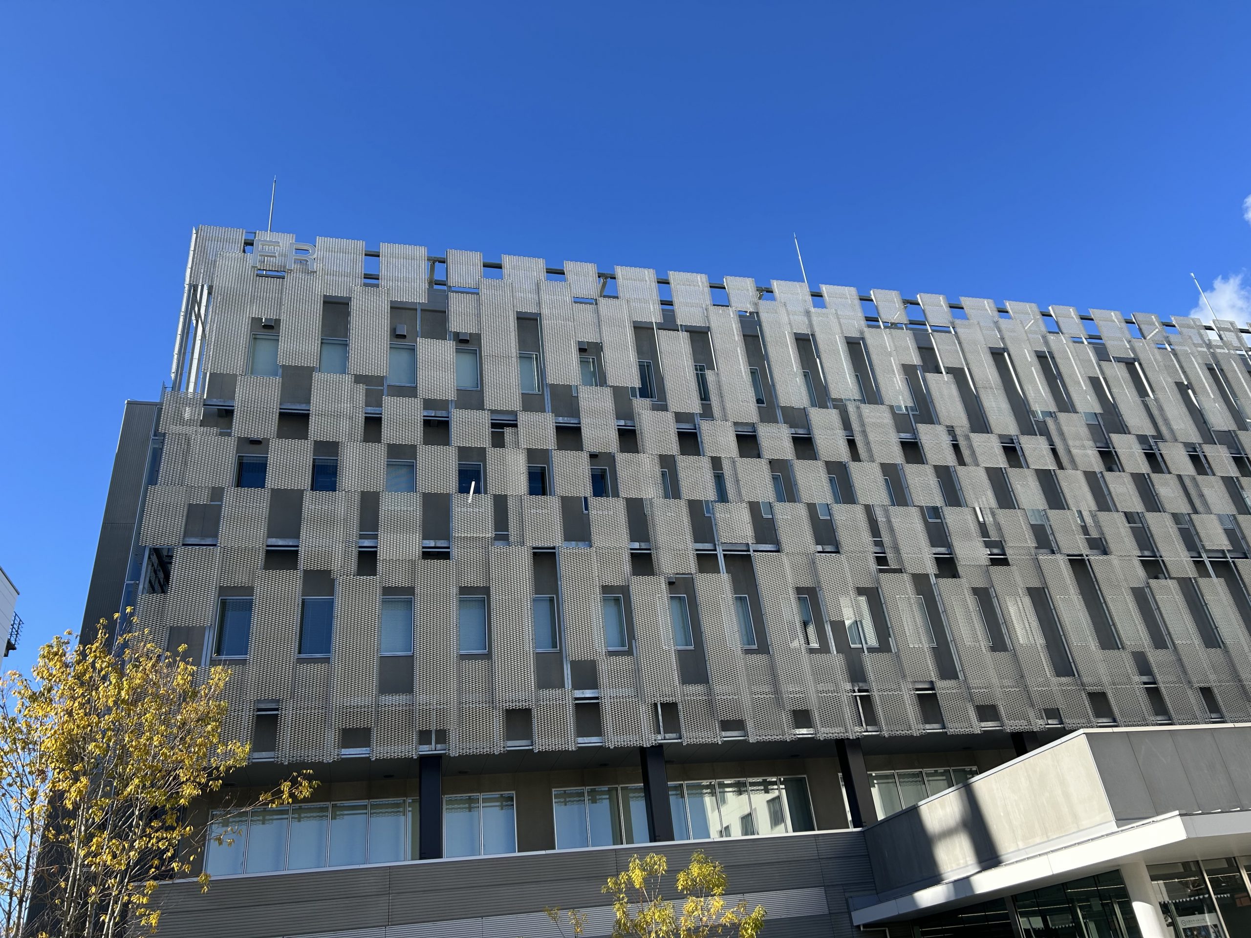 大学に到着するとすぐに、新しく建設された大きな図書館が見えてきて、その素敵な外観を見ながら未来工学部の校舎の中へと進んでいきました。未来工学部も北里大学では新しい学部なので、とても綺麗な校舎で講義を受けることが出来ました。