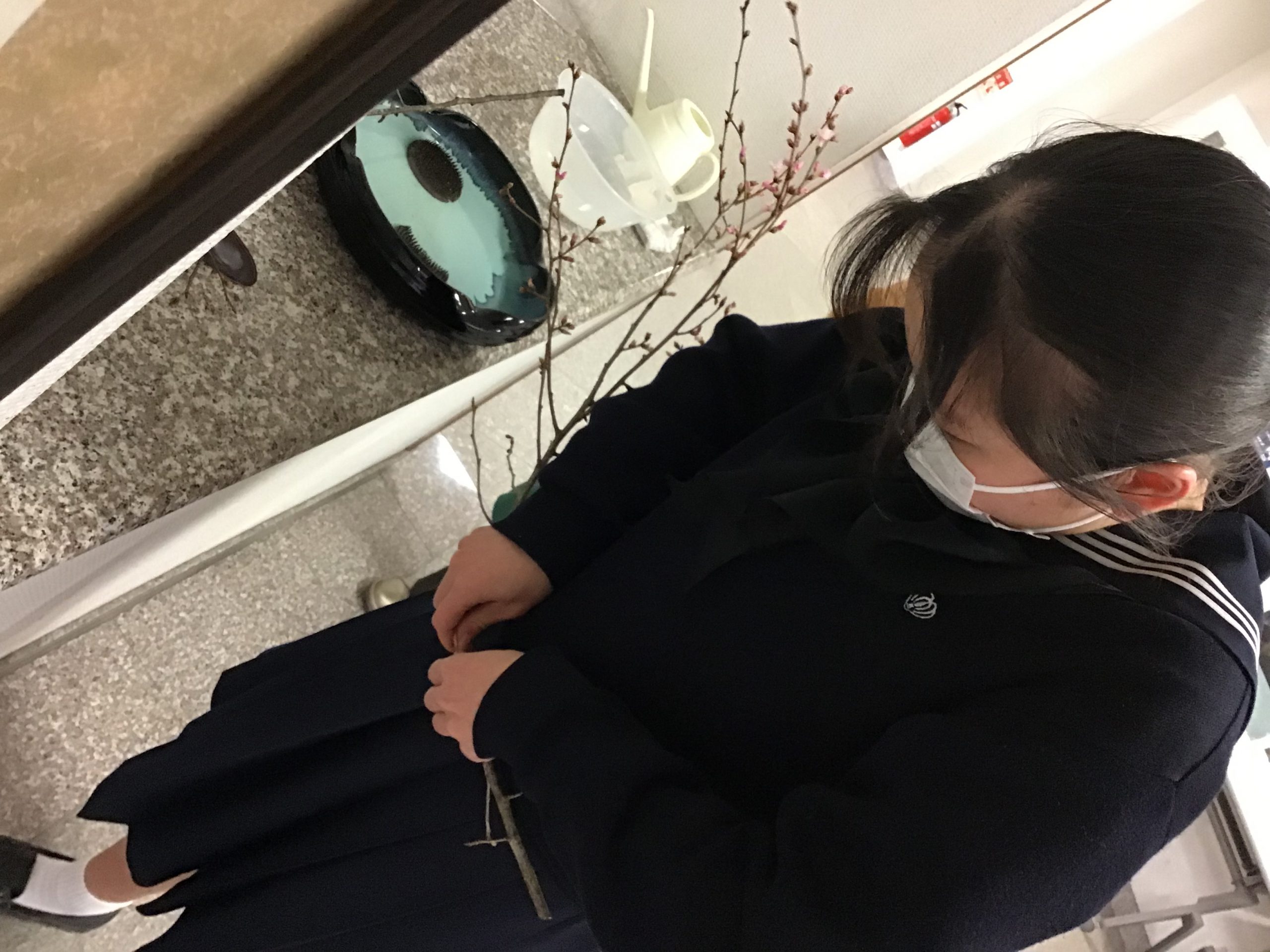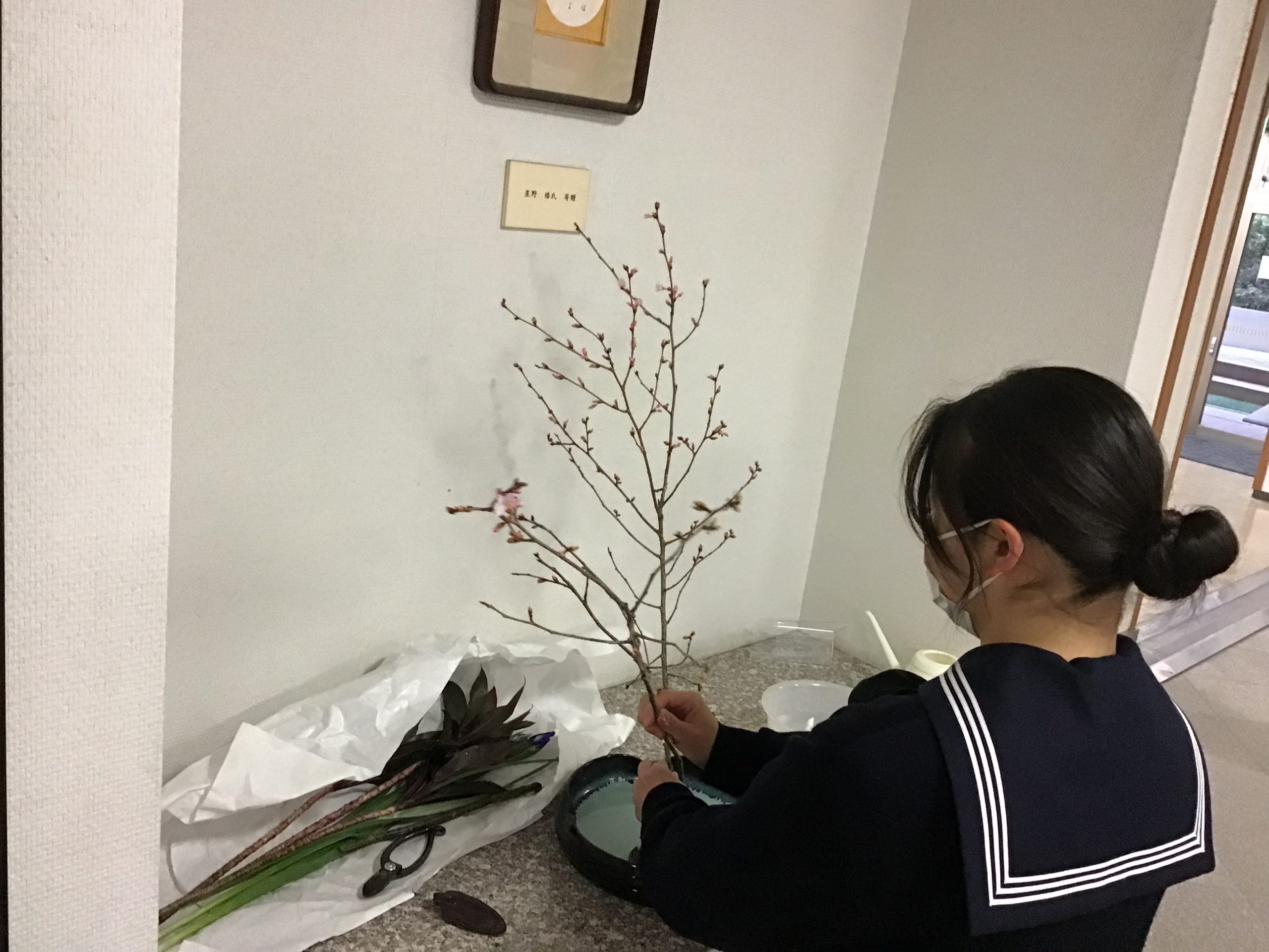 今日も高2華道履修生徒がホールにお花をいけてくれました。